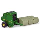 This authentic John Deere 1:64 set includes one incredibly detailed model 568 round baler and six individual round bales. The baler features a functional chute that can hold one round bale. Other features include durable die cast construction, rotating spindle, and a front hitch that is compatible with most 1:64 tractors. Baler measures 2.75 x 2 x 2. inches. Manufactured by Ertl, the worldwide leader in farm toys. Recommended age: 3 years and up.