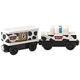 (More customer reviews)The Sodor Dairy Cars are proving to be a nice addition to our Thomas the Train collection. The real wood cars are nicely detailed and seem to be quite durable. The mooing cow when the dairy car door is opened and closed is a nice touch. My toddler very much enjoys playing with the dairy cars as he is frequently seen pretending to drink the milk. However, a word of caution - if you have a child who likes to put non food items in his or her mouth I would consider removing the milk bottle as it could be a potential choking hazard. I would recommend this item to a friend.